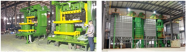 В нашем цехе имеется охладитель песка, смеситель песка, автоматические системы подачи песка, автоматические формовочные линии, участок глиняного песка, участок покрытого песка, участок смоляного песка, токарный станок с ЧПУ, обрабатывающий центр с ЧПУ, автоматические шлифовальные линии, полировальные станки и т. д.